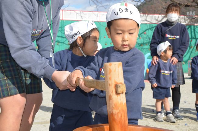 みんなで「ぺったんぺったん♪」と言いながら餅つきをしました。