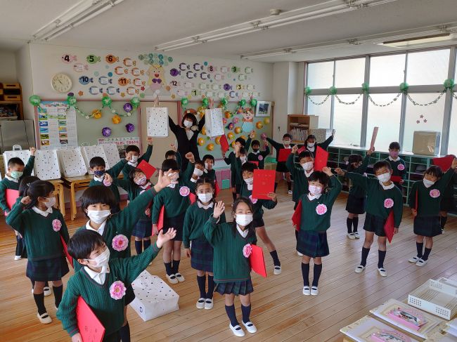 卒園児の二人は右にいるえみこ先生が担任でした。