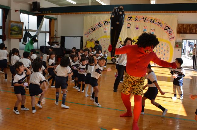 本園の体育館はとても広く、天井も高く園児たちの楽器の音や声がとても響き渡りました。