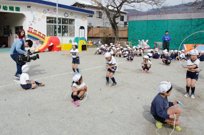 明日は幼稚園でマラソン大会をします。その練習風景や豚汁つくりの様子を取材していただきました。
