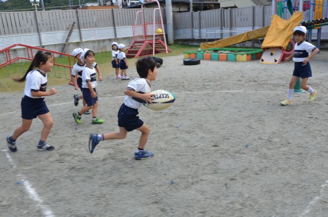 今、外遊びのブームは「ラグビー」です。