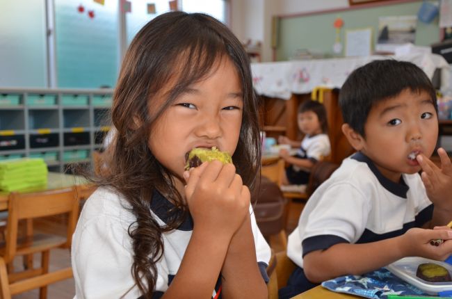 園長先生たちが蒸かして、お昼の時間に食べました。