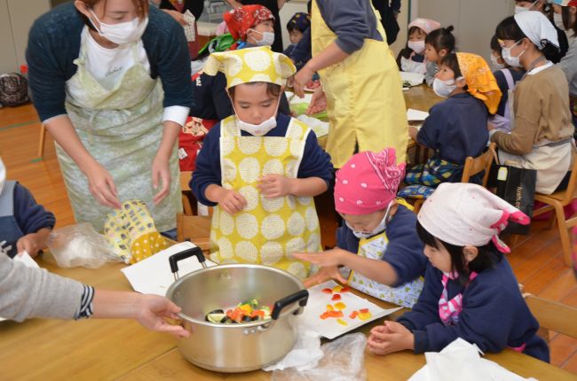 実際にゆり組の皆さんが野菜にふれ、調理をしました。