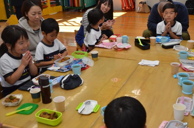 出来上がったカレーはお母さんたちと一緒においしくいただきました。